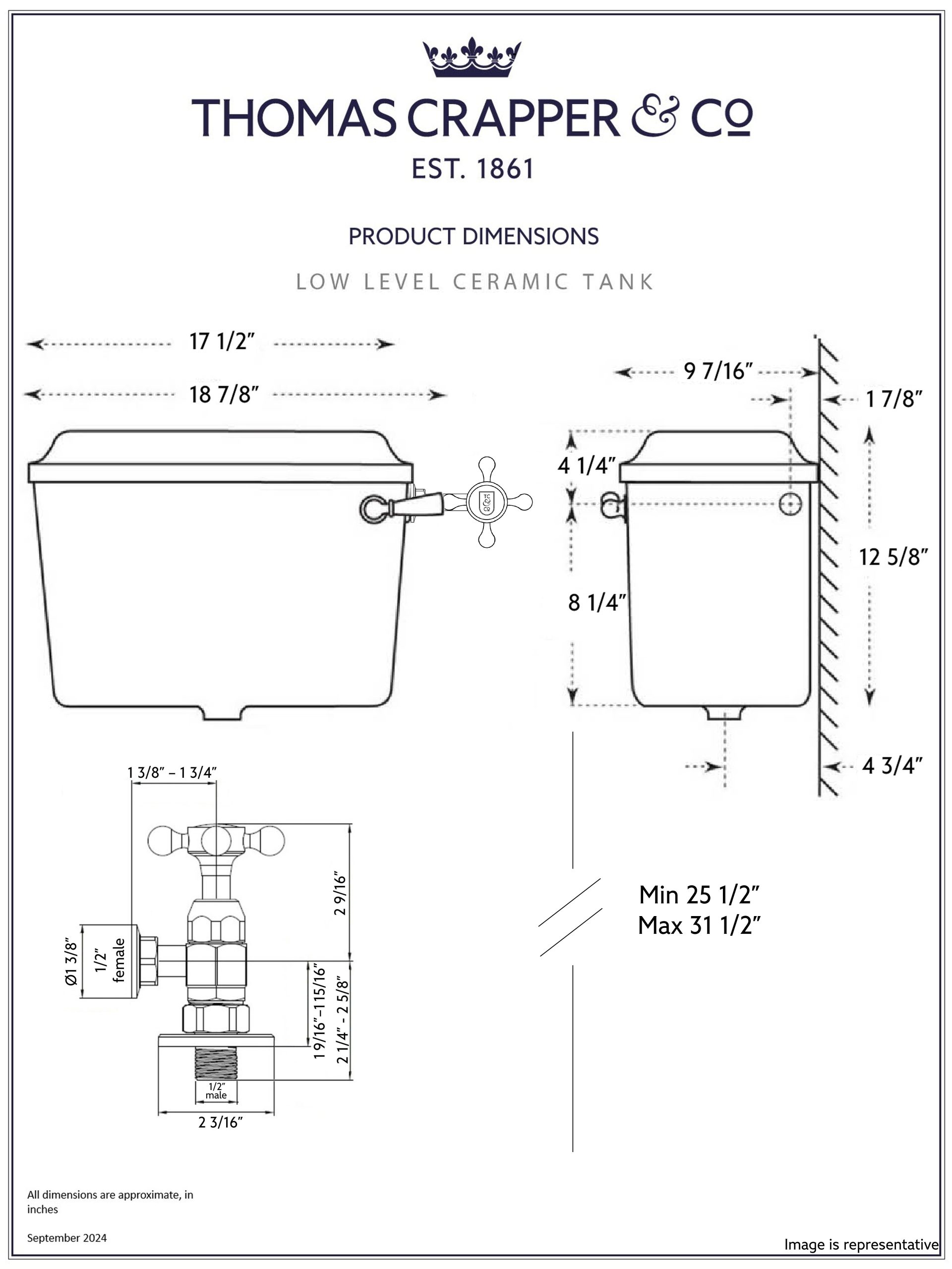 The Thomas Crapper Low Level Ceramic Tank has many authentic details and is in perfect proportion to the WC Pan and other fittings.